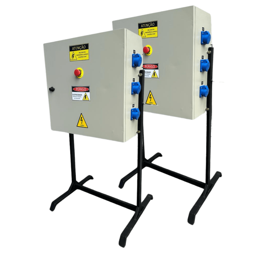 Painel compacto que disponibiliza pontos de alimentação (Tomadas Industriais ou NBR 14136 – Padrão Brasileiro), distribuindo energia em obras ou industrias.